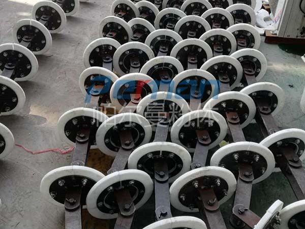板鏈管鏈輸送機(jī)是輸送粉狀、小顆粒狀及小塊狀等散狀物料的連續(xù)輸送設(shè)備,可以水平、傾斜和垂直組合輸送。在密閉管道內(nèi),以鏈片為傳動(dòng)構(gòu)件帶動(dòng)物料沿管道運(yùn)動(dòng)。當(dāng)水平輸送時(shí),物料顆粒受到鏈片在運(yùn)動(dòng)方向的推力。當(dāng)料層間的內(nèi)摩擦力大于物料與管壁的外摩擦力時(shí),物料就隨鏈片向前運(yùn)動(dòng),形成穩(wěn)定的料流;當(dāng)垂直輸送時(shí),管內(nèi)物料顆粒受鏈片向上推力,因?yàn)橄虏拷o料阻止上部物料下滑,產(chǎn)生了橫向側(cè)壓力,所以增強(qiáng)了物料的內(nèi)摩擦力,當(dāng)物料間的內(nèi)摩擦力大于物料與管內(nèi)壁外摩擦力及物料自重時(shí),物料就隨鏈片向上輸送,形成連續(xù)料流。