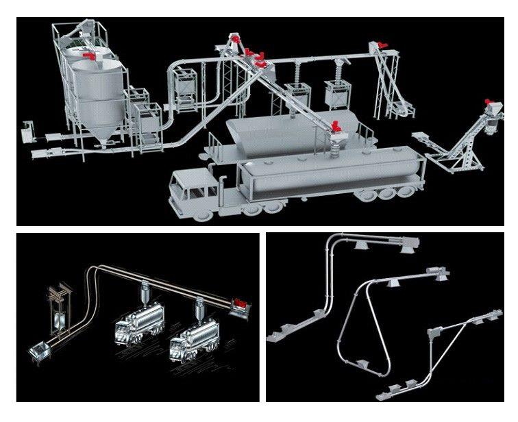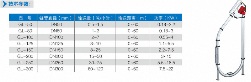 在密閉管道內(nèi),以鏈片為傳動(dòng)構(gòu)件帶動(dòng)物料沿管道運(yùn)動(dòng)。當(dāng)水平輸送時(shí),物料顆粒受到鏈片在運(yùn)動(dòng)方向的推力,就隨鏈片向前運(yùn)動(dòng),形成穩(wěn)定的料流;當(dāng)垂直輸送時(shí),管內(nèi)物料顆粒受鏈片連續(xù)向上的推力,阻止了物料下滑,并產(chǎn)生了橫向側(cè)壓力,增強(qiáng)了物料的內(nèi)摩擦力,當(dāng)物料間的內(nèi)摩擦力大于物料與管內(nèi)壁外摩擦力及物料自重時(shí),物料就隨鏈片向上移動(dòng),形成連續(xù)料流。粉體物料可在三維空間內(nèi)沿封閉管道直線移動(dòng)或改變方向;水平輸送距離可達(dá)60米,垂直輸送距離可達(dá)到30米。