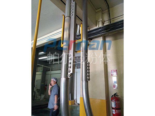 3、物料沿著管子平滑輸送,物料破損少,緩慢的彎道輸送使很少的物料顆粒產生碎屑。