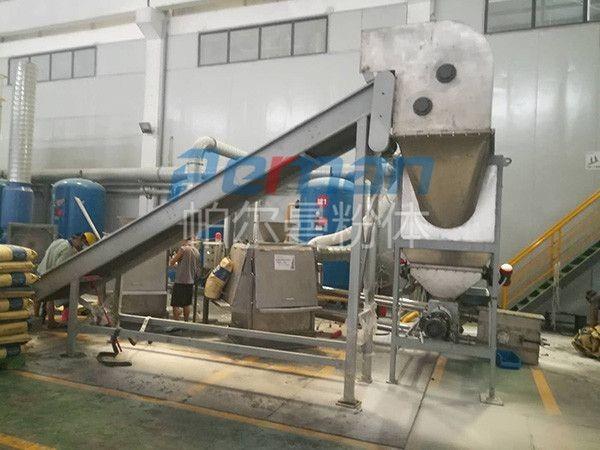 4、設備經過特殊設計,殘破包裝袋與物料完美分離,不會摻雜到物料中,也不會掛在分離裝置里。